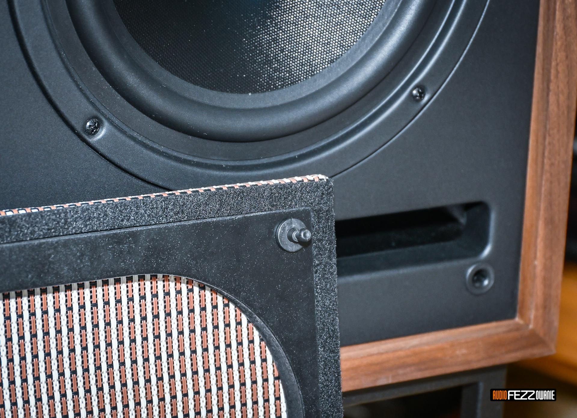 Z kolei dół pasma to robota 22-centymetrowego woofera jak podaje firma, ich własnej konstrukcji (PSW 22.8 CS) z membraną z modyfikowanej celulozy. Klasyczna membrana papierowa idealnie wpisuje się swoim brzmieniem w styl vintage. Driver ten z 1,5-calową cewką posiada relatywnie duży układ magnetyczny z 12 cm magnesem oraz miedziany kapturek (tzw. pierścień Faradaya) na rdzeniu i specjalnie zaprojektowany aluminiowy korektor fazy zamiast zwykłej kopułki przeciwpyłowej. Wszystko po to, by wyciągnąć jak najwięcej w dolnym zakresie pasma i zreprodukować dźwięk najwierniej jak to możliwe.